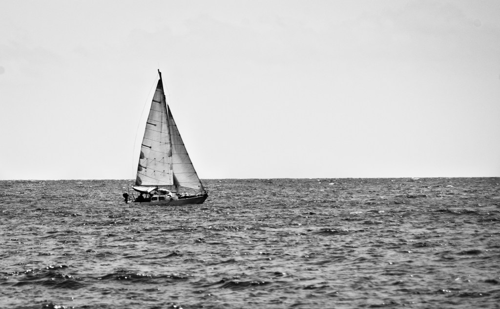 He leaned against the transom, his legs extended on the bench with his ankles crossed. He squinted into the afternoon light to check the trim of the sail. His skin was sunbrowned and his hair sun-bleached. The crinkles around his eyes had deepened in their months at sea, travelling from island to island in their empty-nest years. His face was weathered now, and it suited him. He looked very alive. She watched him from beneath her sun hat. Sunlight glinted off his eyebrows and arm hairs. They shone gold, like they did all those years ago when she had first met him in the Florida Keys. She had told her girlfriend, “He’s the kind of man who is handsome now, and will become even moreso as he ages.”