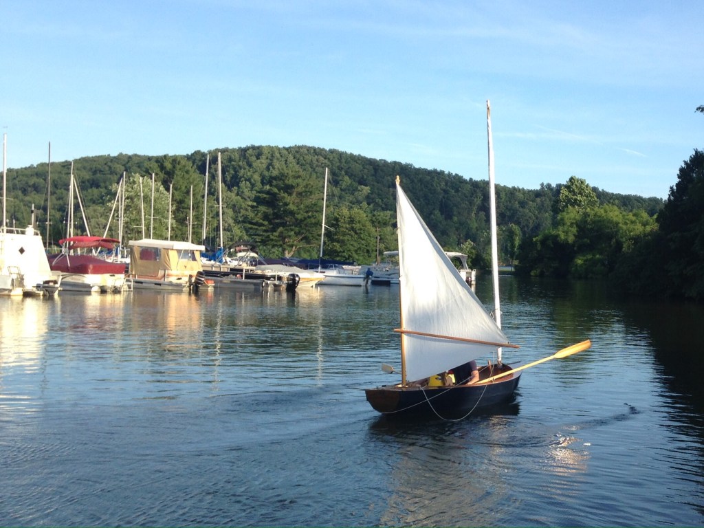 I also learned that the the hardware that holds the oars in position is called an oar lock, and I learned from a question from someone in the boat ramp parking lot that our boat has a sprit boom. I am unclear what this means.