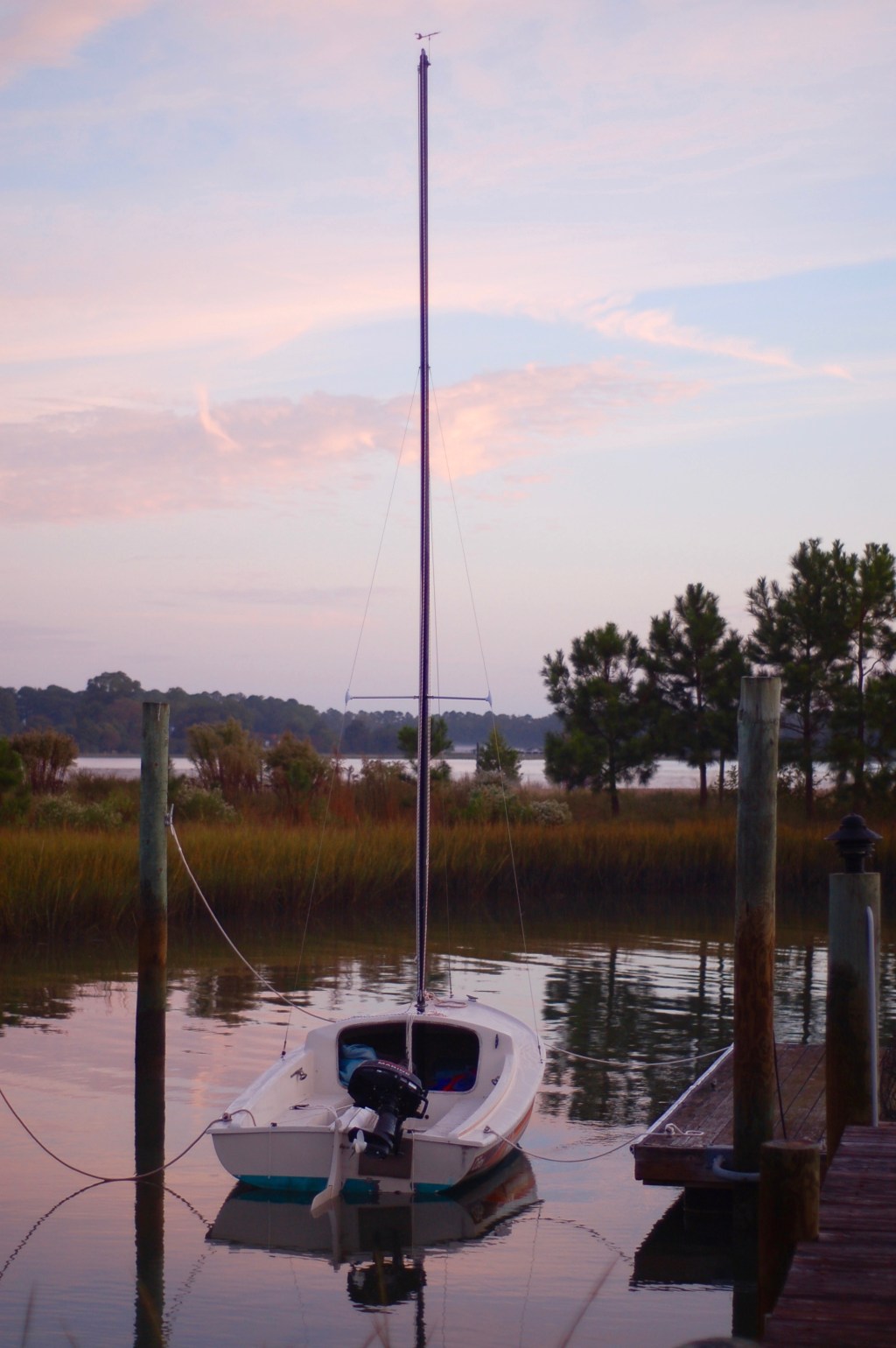 That morning, after being discontent with my performance hoisting and lowering the sails on the previous day’s trip, I sat on the airbnb porch with my notebook. Steam drifted from my coffee cup, and I declared to my husband that I was setting a goal: by the end of next summer, I wanted to be able to do everything on a daysail, end to end, from motoring away from the boat ramp, to skippering the journey, to docking at the end of a sail. I was tired of feeling incompetent on the boat.