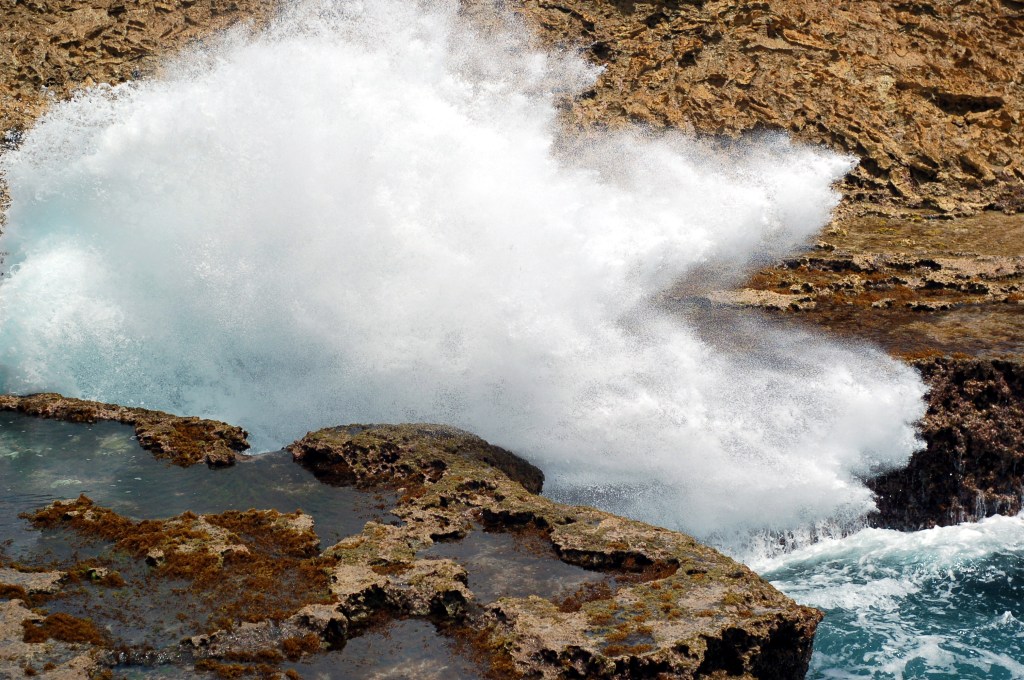 The most amazing part of the park, aside from being surrounded by the magnificence of all that ocean energy pounding against ancient rock, was a formation called Boka Pistol. Along the windward coast is keyhole shaped inlet. As waves rush in, run out of room, and continue to fill the space anyway, air gets trapped in the formation, then makes a thunderous hollow boom before the water, with nowhere else to go, crashes into rock and sprays back out to sea. BOOM-pssssshhhhhhhhhh. We watched wave after wave crash, boom, and spray, each one leaving me breathless with anticipation: how loud will it boom? How high will it splash? Which direction will it shoot?