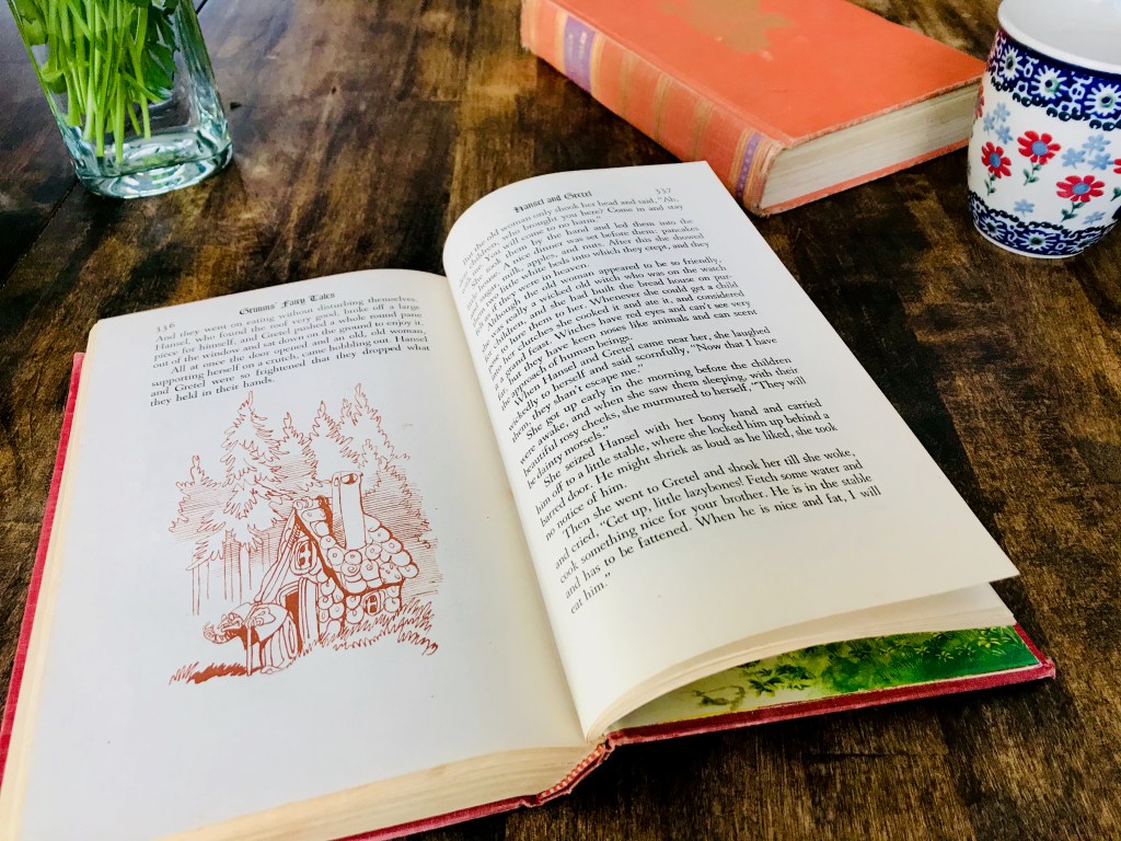 ”Hi mom! Do y’all still have the Grimm’s book of fairy tales?”