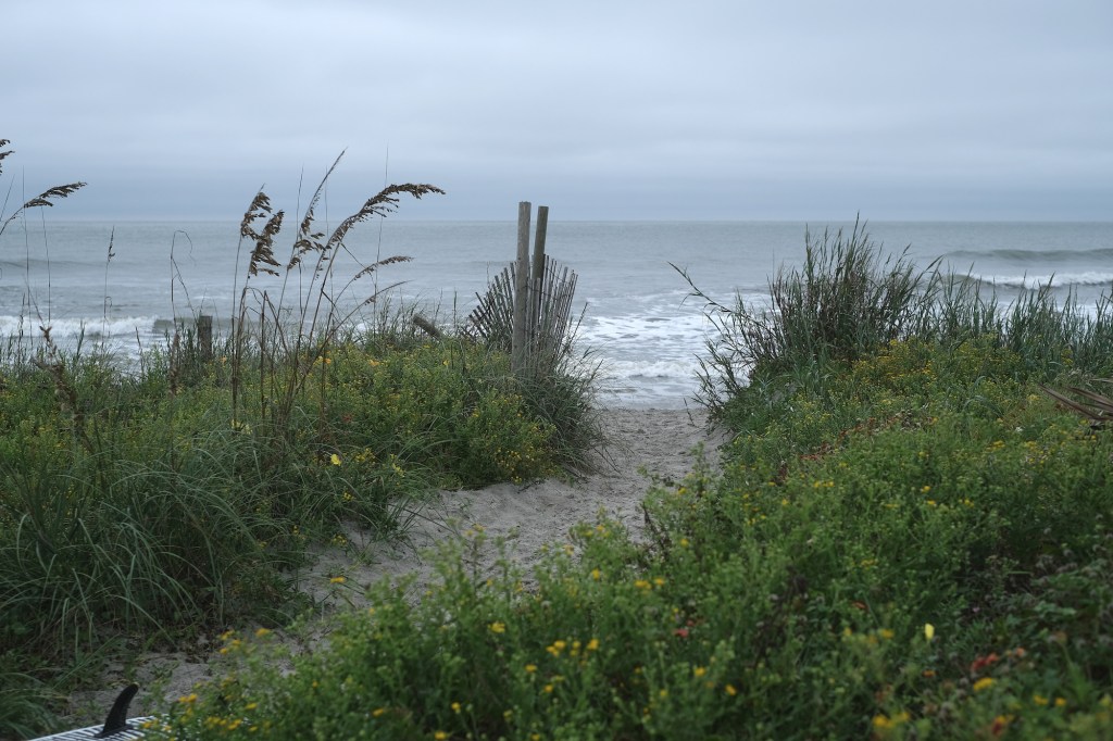 We stayed up late, of course. So despite probably needing a lot more rest, I was happy I at least slept this morning beyond my normal 5 am wakeup. Nobody else in the house was awake, and I couldn’t lie there in bed listening to the ocean and not go see it. I brushed my teeth, gulped down some water, pulled on a pair of jeans, and walked barefoot across the street to the beach. No coffee yet, I wanted to get out there immediately.