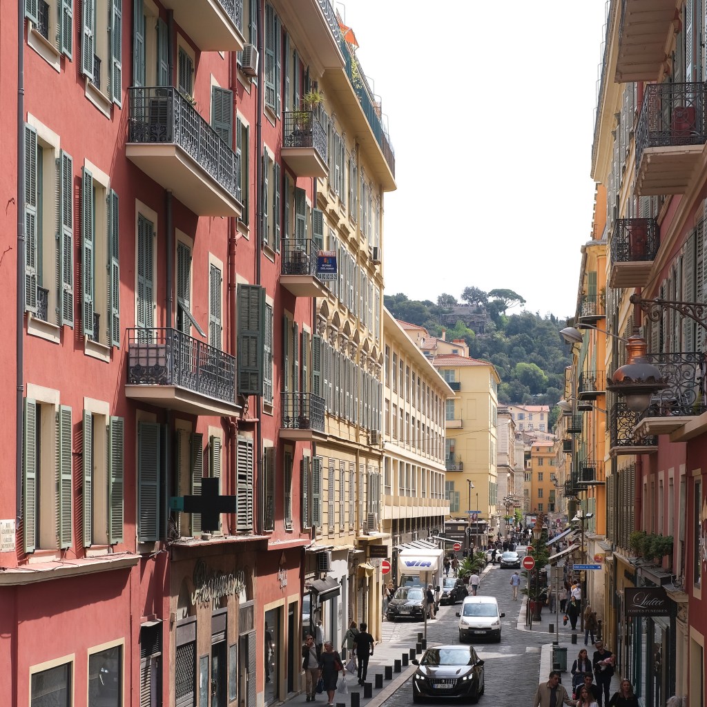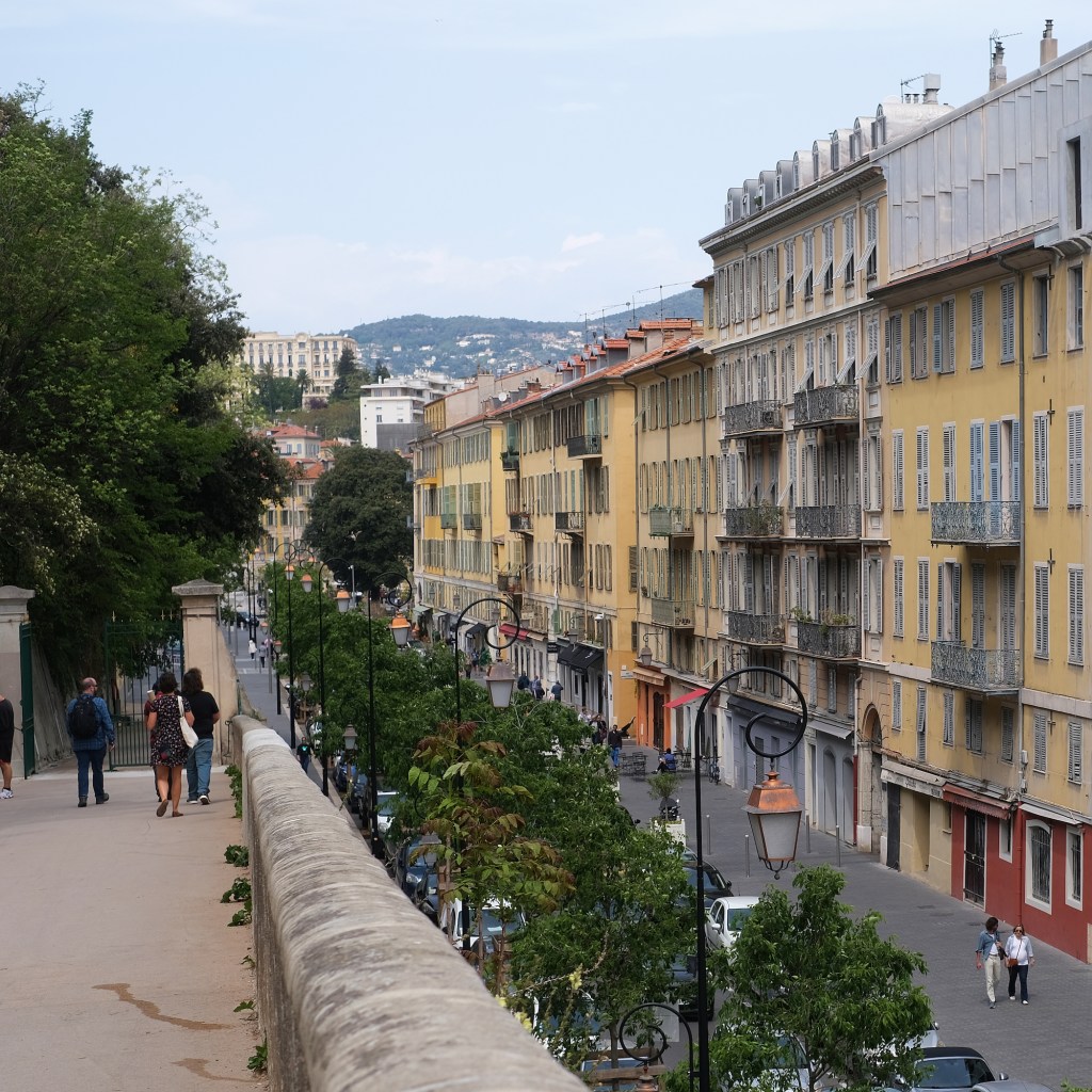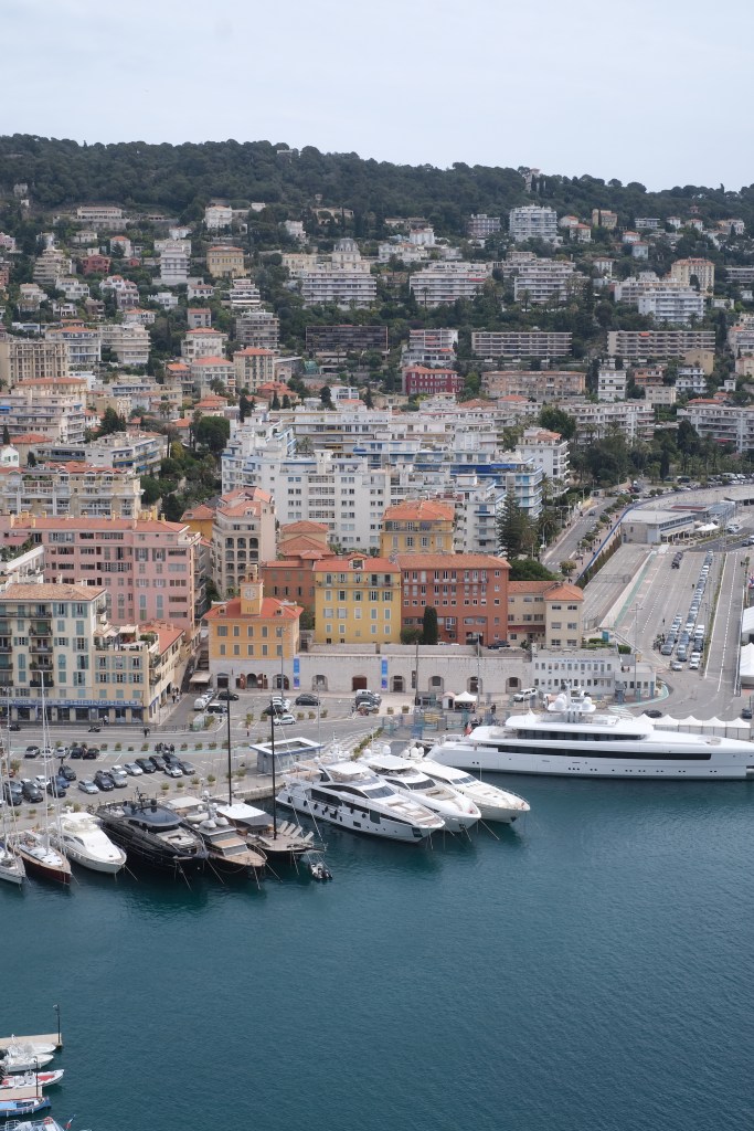 Saturday we took a day off from work. We rode the train from Cannes to Nice, then walked the city. We visited the Marché aux Fleurs Cours Saleya (flower market), climbed the stairs to the top of the Château de Nice (Nice castle), ate traditional socca (savory chick pea pancakes) and pissaladière (flatbread with caramelized onions) at Chez Pipo, and finished the day at the Florian confectionery, where they had the most beautiful flower jellies and candied fruits. I did buy chocolate dipped candied orange slices there to bring home, and they are delicious.