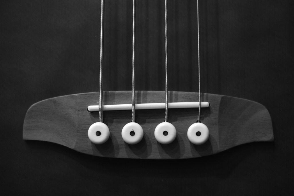 There are a few things that no amount of editing can fix, and the biggest ones I’ve found so far are exposure and focus. I take photos now at lots of different settings for exposure, but I still have a lot to learn about light to get it right. Also, my eyes aren’t great, and it’s hard for me to see whether an image is actually in focus until I get it on my computer; I’m often disappointed that what looks great on my camera’s tiny display screen actually isn’t that great on a screen where I can actually see it. Most of that comes down to trying to shoot in low light without a tripod though, meaning I end up with super shallow depth of field, like in the first guitar image below where the grain of the guitar body and part of the bridge are in focus, but the bridge pins and the strings — only about 1cm closer to the camera — are not. These discrepancies are teaching me what I need to improve in order to capture what I’d hoped to capture, though. I’ll keep practicing. I should have a few years left in me to keep learning.