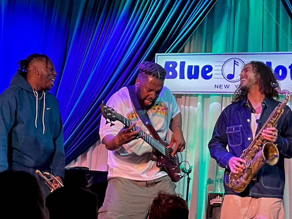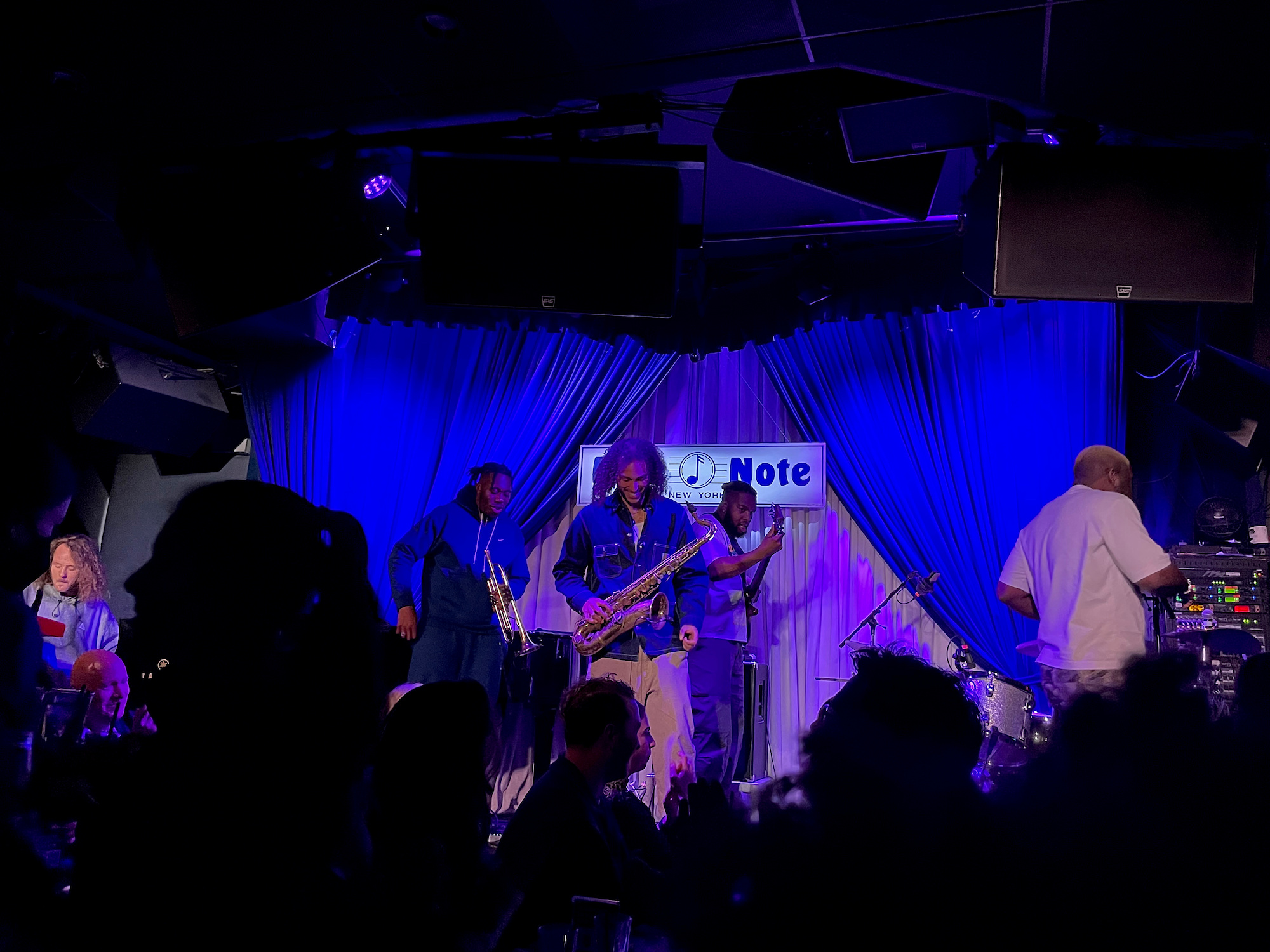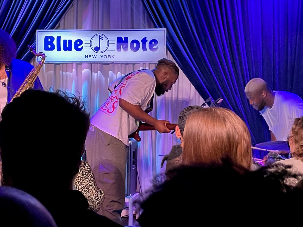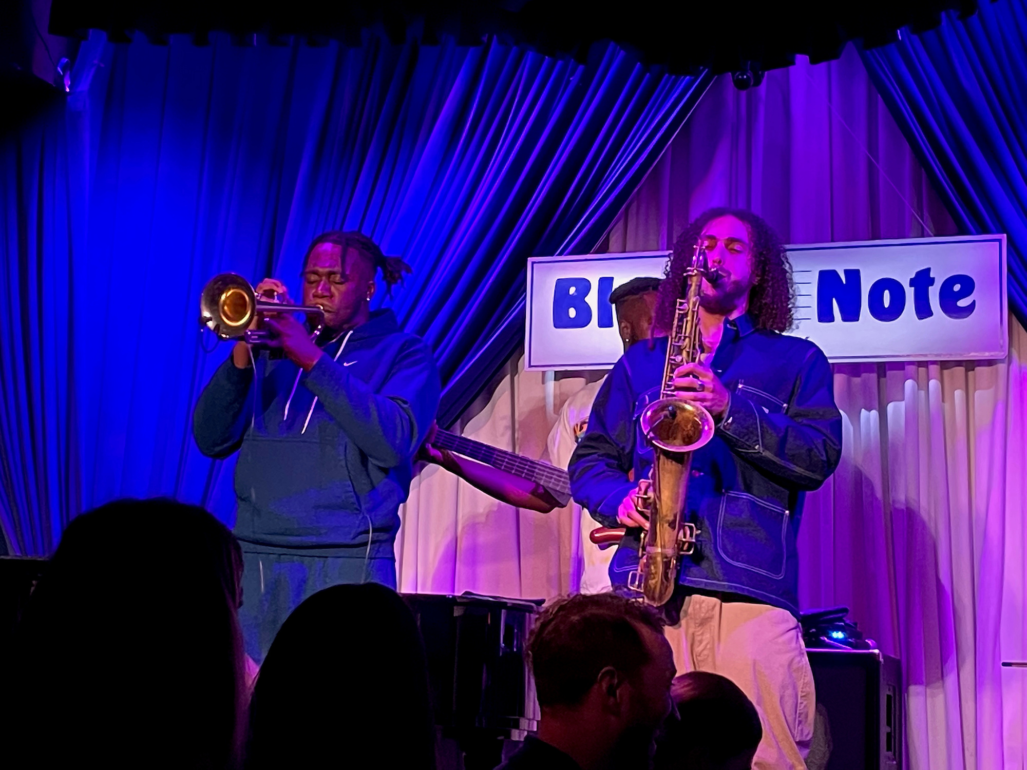 So last weekend we went on a trip where our evening entertainment wasn’t to sit at a table and eat. Instead, we had music: two jazz clubs and Hadestown on Broadway. On my husband’s birthday, we had 10:30pm tickets to see Ezra Collective play at Blue Note in Greenwich Village. Since the show started later than our usual bedtime, we grabbed pizza at Song E Nepule in the West Village, then coffee and cheesecake at the bar of a packed restaurant further up the street before heading over to Blue Note to get in line for a good seat. It was a chilly night and we watched the Village pulse as people spilled out of restaurants and bars and queued outside of comedy clubs. We were pretty close to the front of our own line, and when the doors opened at 10pm, we selected seats not right up next to the stage, but about 15 feet away. We were packed shoulder to shoulder at the little two-top tables pushed together to make as efficient a use of space as possible.