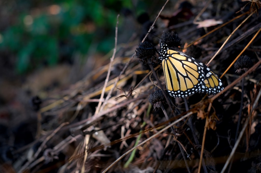 Yesterday, since I didn’t have the mulch yet, I cut back about half of a meadow patch where we let the grass grow tall just to see what would happen. What happened is that one invasive ornamental grass — Miscanthus (silvergrass) — took over. I love its bronze tassels in autumn, but the grass grows aggressively, and it’s stems are thick and woody like bamboo, making it hard to trim or remove, and the pretty bronze tassels are not worth the mess the grass makes when I try to cut it back. I spent a lot of yesterday digging up clumps of this grass and preparing an area on the hill for the mulch to be dumped.