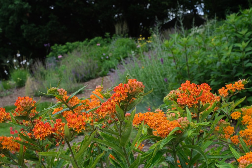 Unlike other gardening days, when I’ll listen to podcasts I’ve saved up for the occasion, I didn’t plug in while I worked yesterday. I listened to wind in the leaves and birdsong, the scrape of the shovel in gritty and rocky soil, the metallic schwiff of shears as I cut back yarrow and salvia. I felt the breeze on my ears and relaxed into the quiet of the gray Sunday morning. I watched a worm wriggle on top of the mulch when I unearthed it to make a hole for a transplanted yarrow.