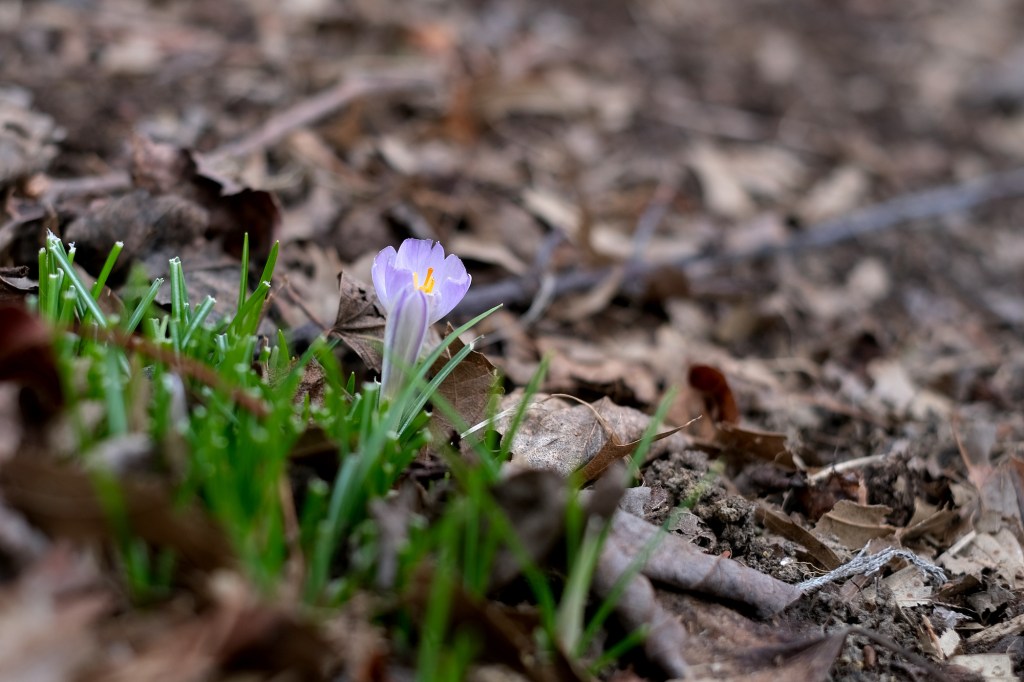 One crocus has opened as well, despite its greenery being nibbled to the ground.