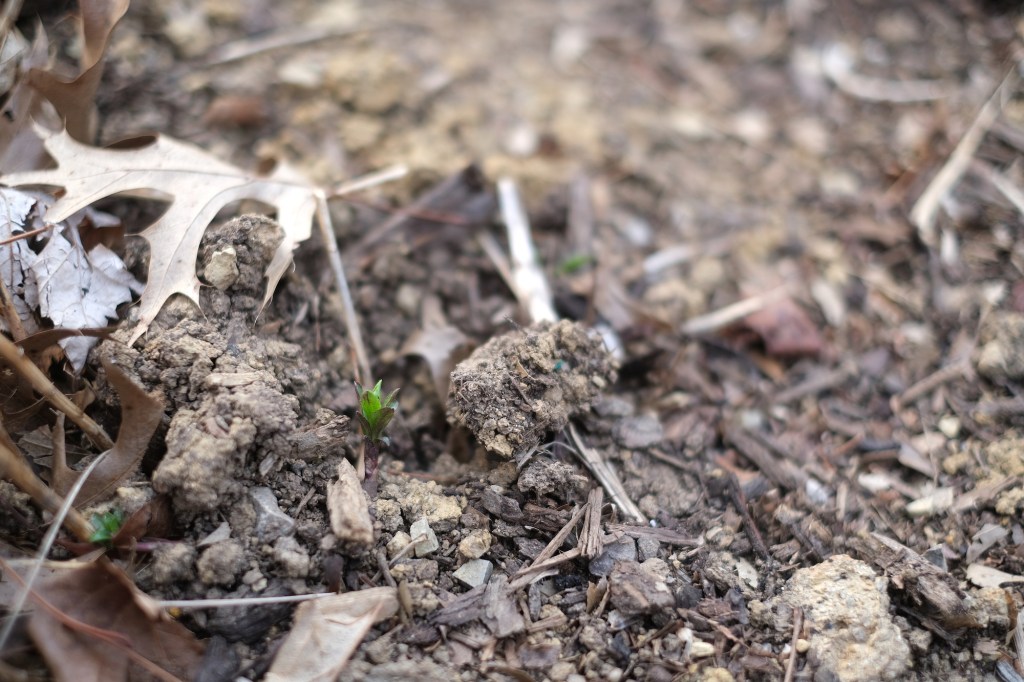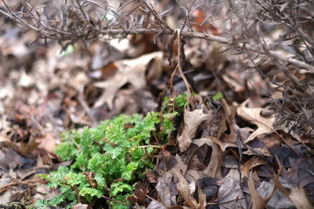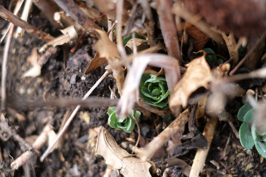 As I worked, I smelled fresh mint in the mint patch. I listened to birds chirp and leaves rustle in a warm breeze. When I pulled away dead debris and raked out dry leaves that have insulated the ground these last 5 months, I found green emerging underneath.