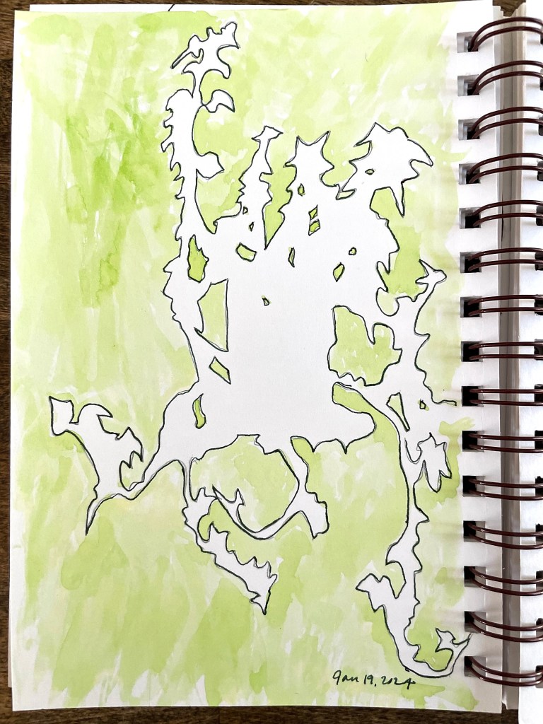 We had a 12 week timeline to create our piece of art. For 10 of those 12 weeks, I wondered what I would make for the exhibit. I drew in my daily journal with ink. I doodled. When I set my intention in January, my goal for 2024 was to create a botanical journal. But as I drew every day in the early part of the year, nature and botanicals weren’t what I enjoyed drawing. Instead, I enjoyed drawing everyday objects, little reminders of quiet time in the morning with my coffee, or car chats while getting boba with our daughter, or a relaxing cocktail at the end of the day.