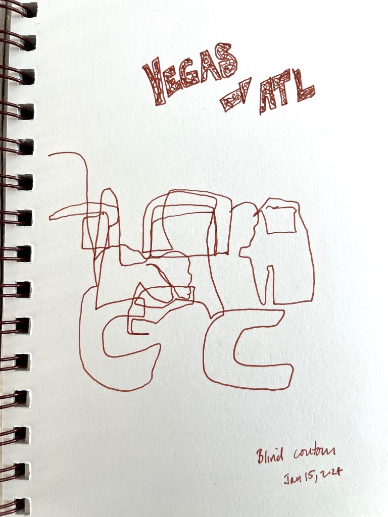The second week of the 30 days of drawing challenge I joined was all about delights. Needless to say, I had fun with this week. I had two long flights so I had lots of time to play with, and I spent more than 10 minutes on some of the drawings. I was absorbed in the activity of making marks on the page, and it brought me pleasure, and I had time, and I had no reason to stop. I feel good about that decision.