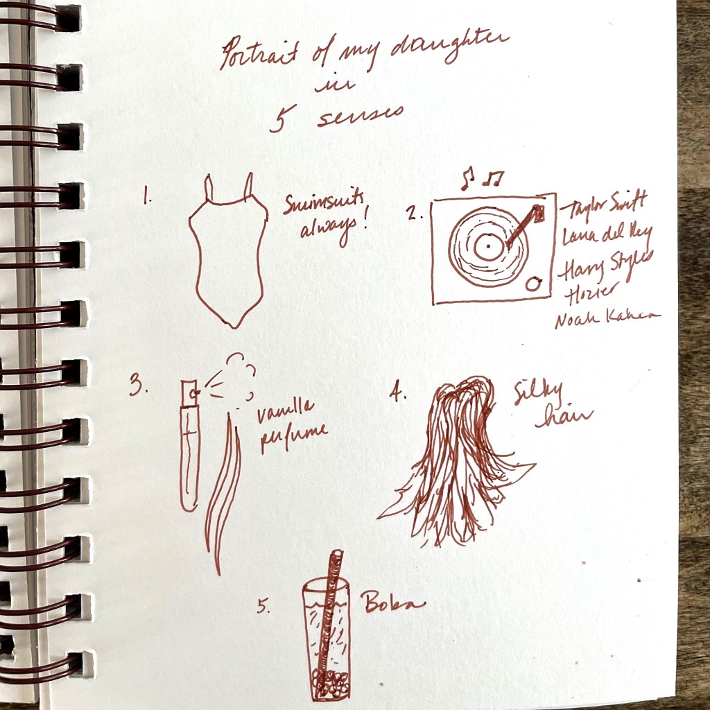 I am all in on this. I love the mundane. I love lounging around in my leisure time and laughing with my husband and kids. I love writing and drawing with my pretty inks. I love sitting by a crackling fire and reading novels. I love standing at the back window and watching the birds, squirrels, and bunnies. I love walking around my neighborhood and seeing the trees and mountains, smelling the air, and listening to wind in the leaves. I love finding beauty in the shape of an ink bottle, delight in my peanut butter and honey toast, awe in nature, curiosity in people-watching, comfort and coziness in my slippers, a surge of love when I smell our daughter’s vanilla perfume, hear her shoulder her swim bag, or taste the latest flavor of bubble tea she’s drinking.