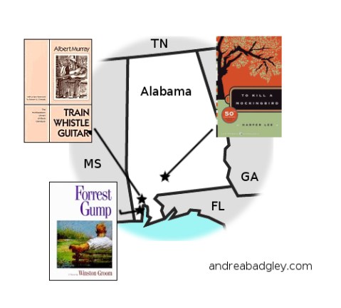 I was pleased that all three picks for the inaugural state of this tour – To Kill a Mockingbird by Harper Lee, Forrest Gump by Winston Groom, and Train Whistle Guitar by Albert Murray – evoked Alabama landscapes, mannerisms, dialects, and the racial frictions inherent in all Southern states. Now, as I move forward into the unknown, the exotic, the slightly terrifying state of Alaska in winter, I’m glad I started someplace familiar.