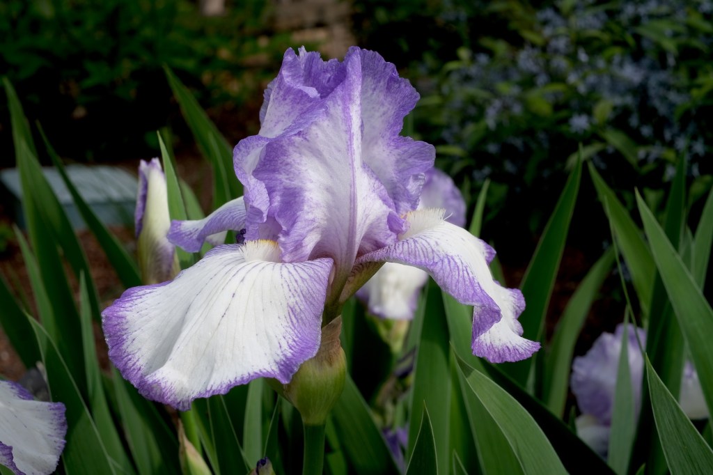With the break in the heat this week, I finally got out after work to tidy the flower beds. Tuesday evening I tackled the front, and Wednesday, the back. I wore long sleeves, long pants, thick Darn Tough socks, and the hiking shoes I use for gardening. I started at the lowest part of the hill, up against our neighbor’s fence, pulling waist high stalks and digging out grass with my spade.