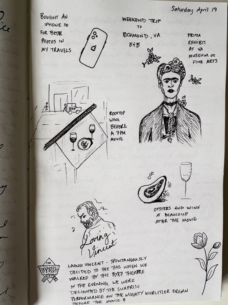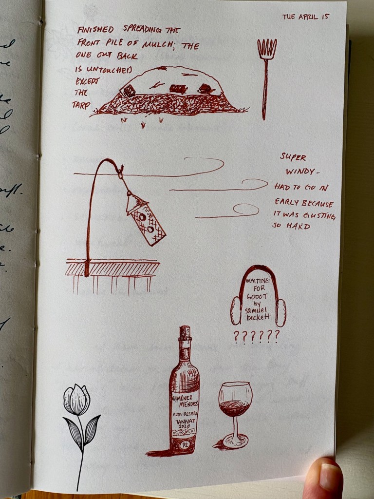 I saved it for five months, and on my first official day of sabbatical, I created my first entry. I’ve written in it every day of this first four weeks of my sabbatical. I’ve also drawn a little something to illustrate every day.