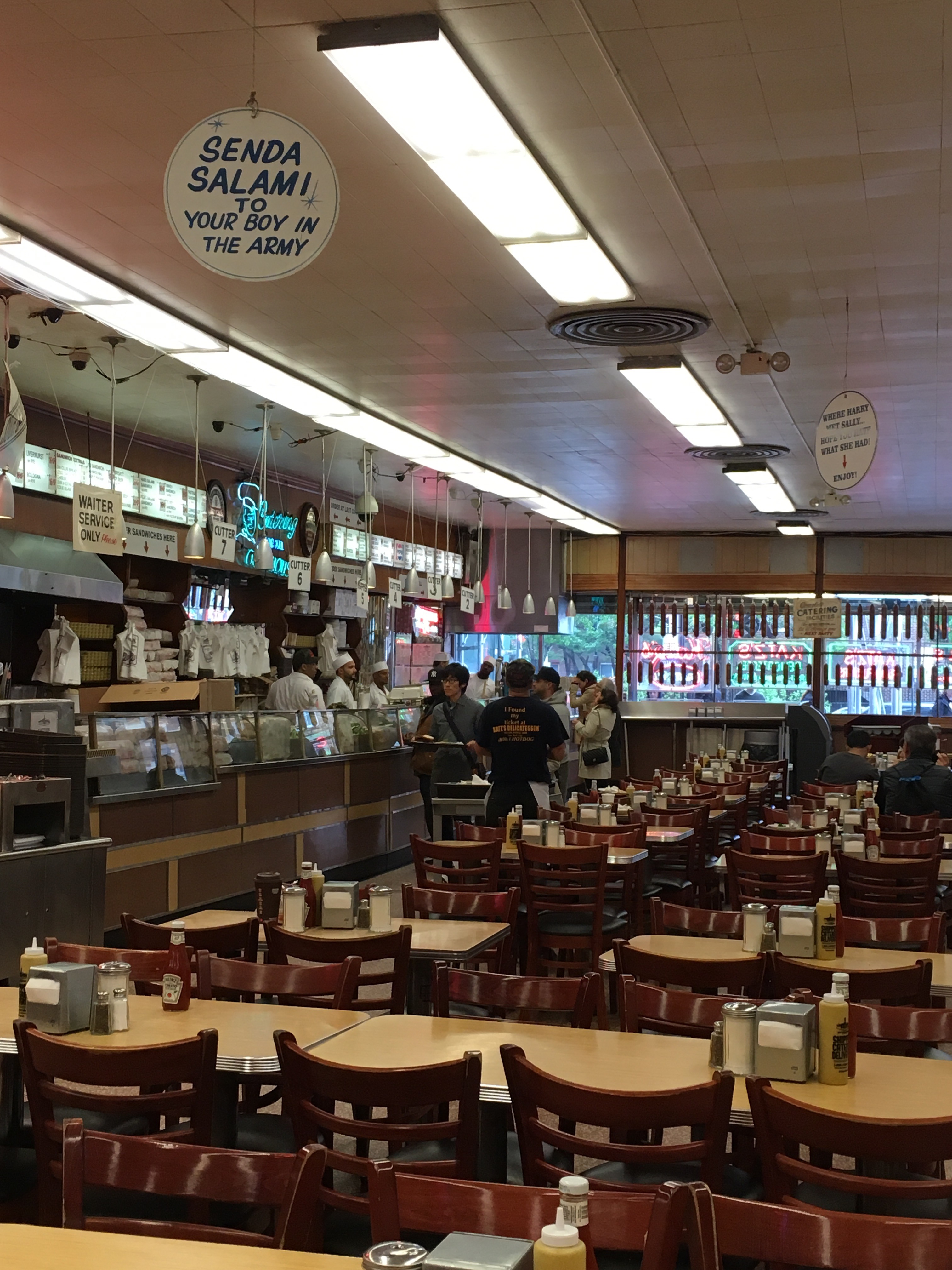 We started our Saturday with a walk east from our hotel in Soho to Katz’s deli near East Village. Mom wanted a NY bagel with lox; I wanted blintzes like my friend’s mom used to make when we had sleepovers at their house.