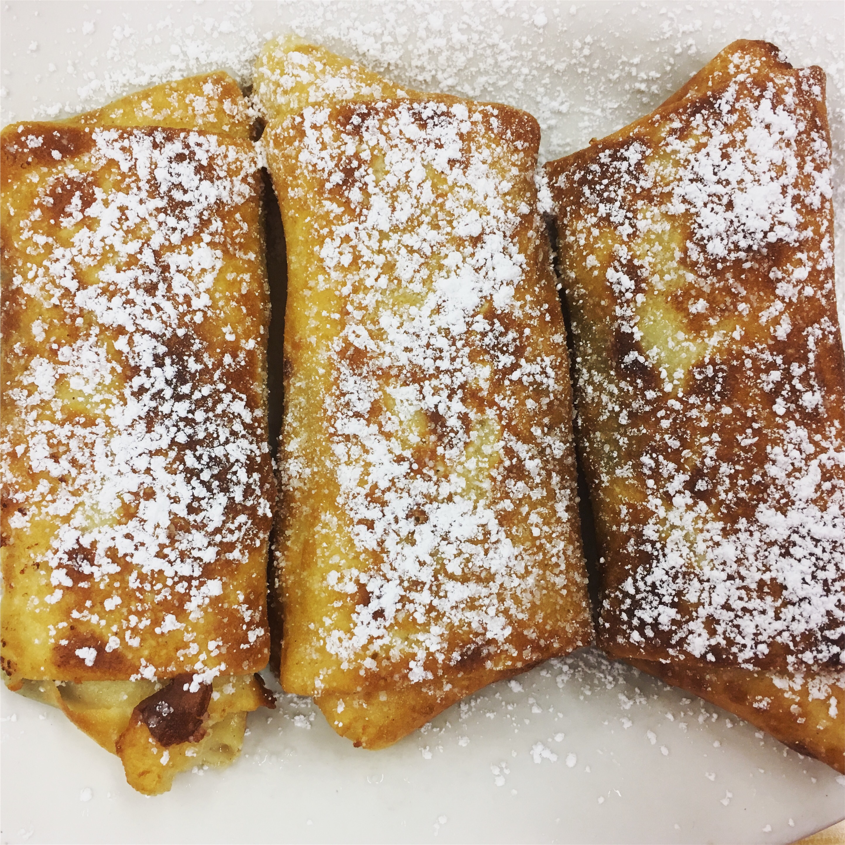 Spongies Cafe in Chinatown, where we got 3 spongies — basically angel food cake muffins — and 2 teas for $6Sunday morning in Little Italy