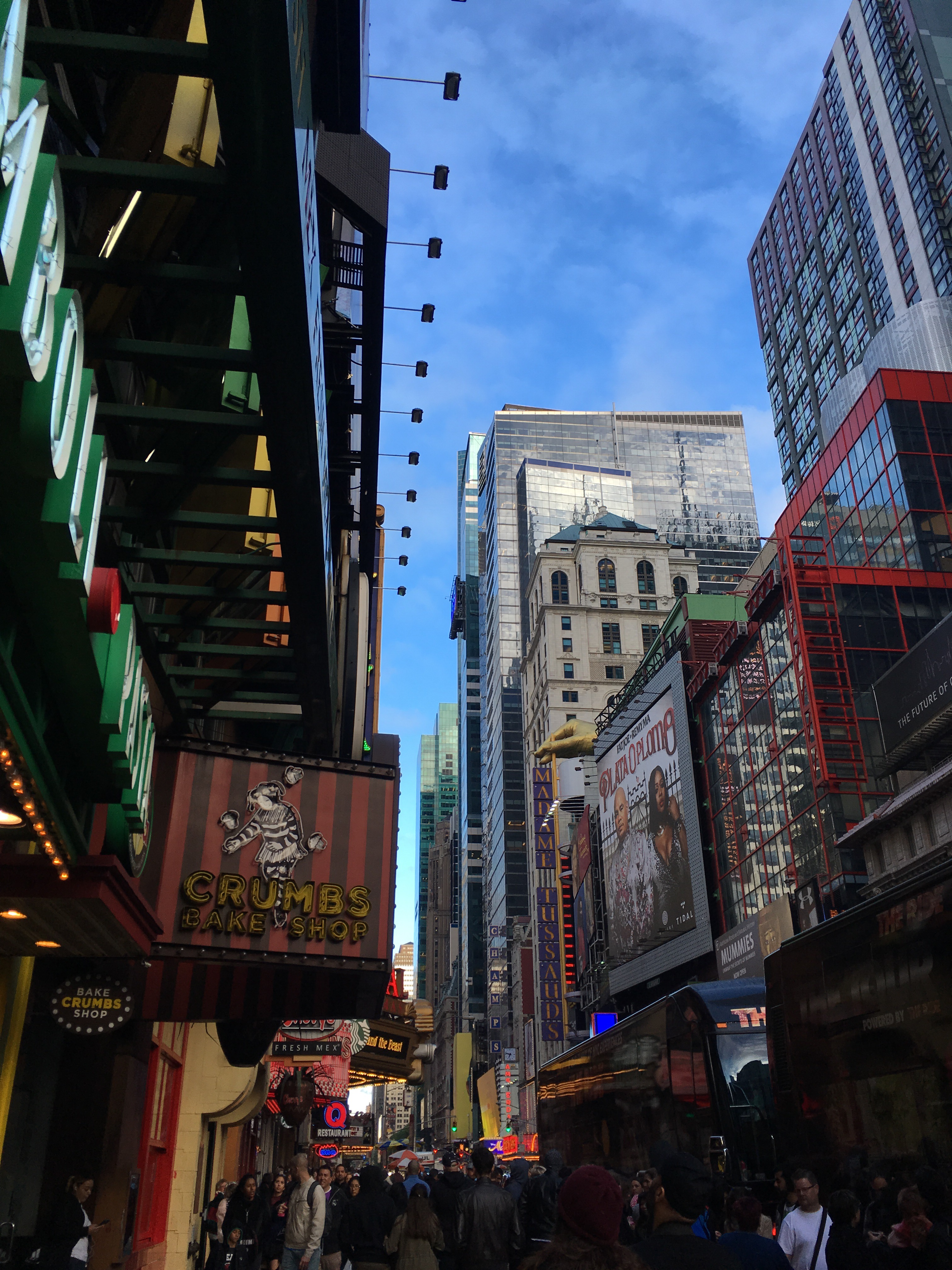 Buskers in Times Square subway stationThese street performers were the perfect introduction to Times Square: vibrant and high-stimulous. When we exited the station onto the street, we were assaulted with the visual loudness of it all.