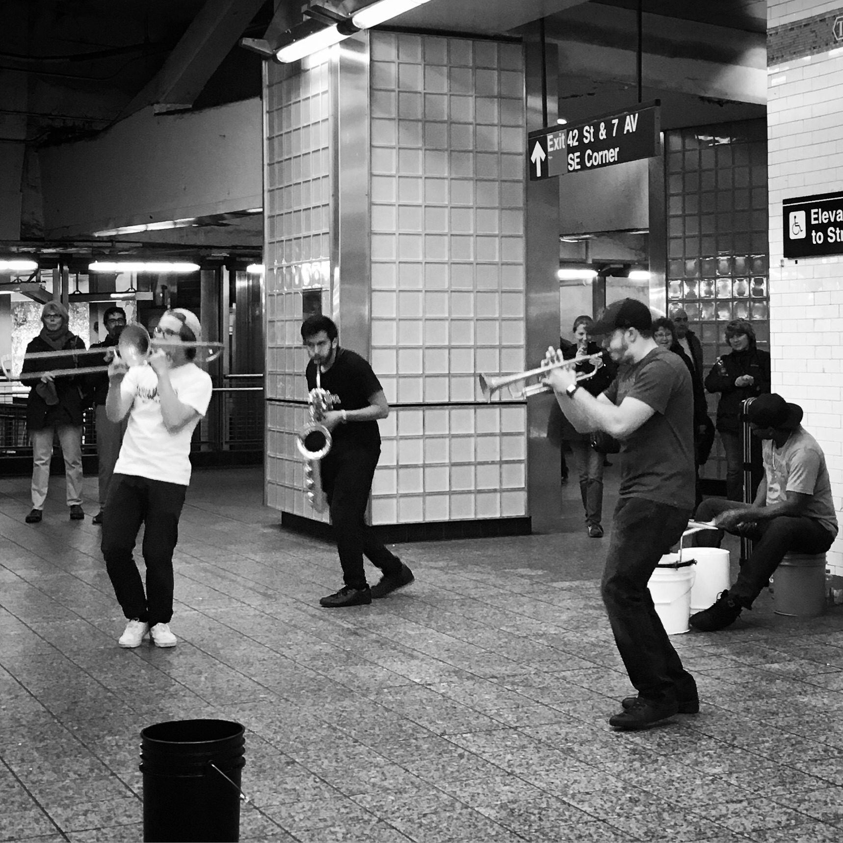 Immediately on exiting the platform, we knew were in the liveliest of all the subway stations we had been to. We heard music — trumpet and trombone and drums — and it was toe-tapping and good. These guys blew beat up brass and played plastic bucket drums, and the lack of fancy instruments did not stop them from producing fine boogie woogie music. They played with heart, with fun, and with passion.