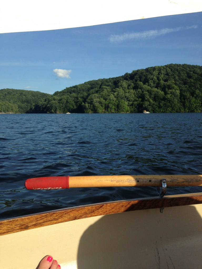 I pointed to a mark on the horizon, out in the sound. “There, that structure.” We turned, and sailed toward the mark I’d chosen. The tiller became more natural. I didn’t react as badly to the boat tipping. I held a steady course.