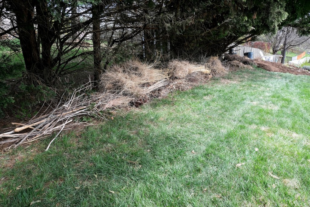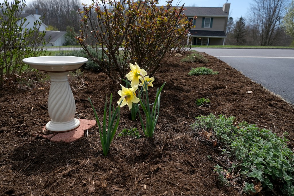 We’re out of the woods and back into farmland. Here’s a weeping willow with tender new leaves — the first spring green. Chartreuse strands sweep the ground, like a gnarled crone in a fairy tale, hunched over a pond. So many trees are leafing out as we come down the mountain! Here’s a magenta tulip magnolia opening its apple sized blossoms. Here’s a hedge of golden forsythia, taller than me, wide as a Volkswagen, and spraying strands of gold like firework trails along the full length of the property line. Here are tidy gold mounds of the same shrub, trimmed into bright globes at the entrance to a school.