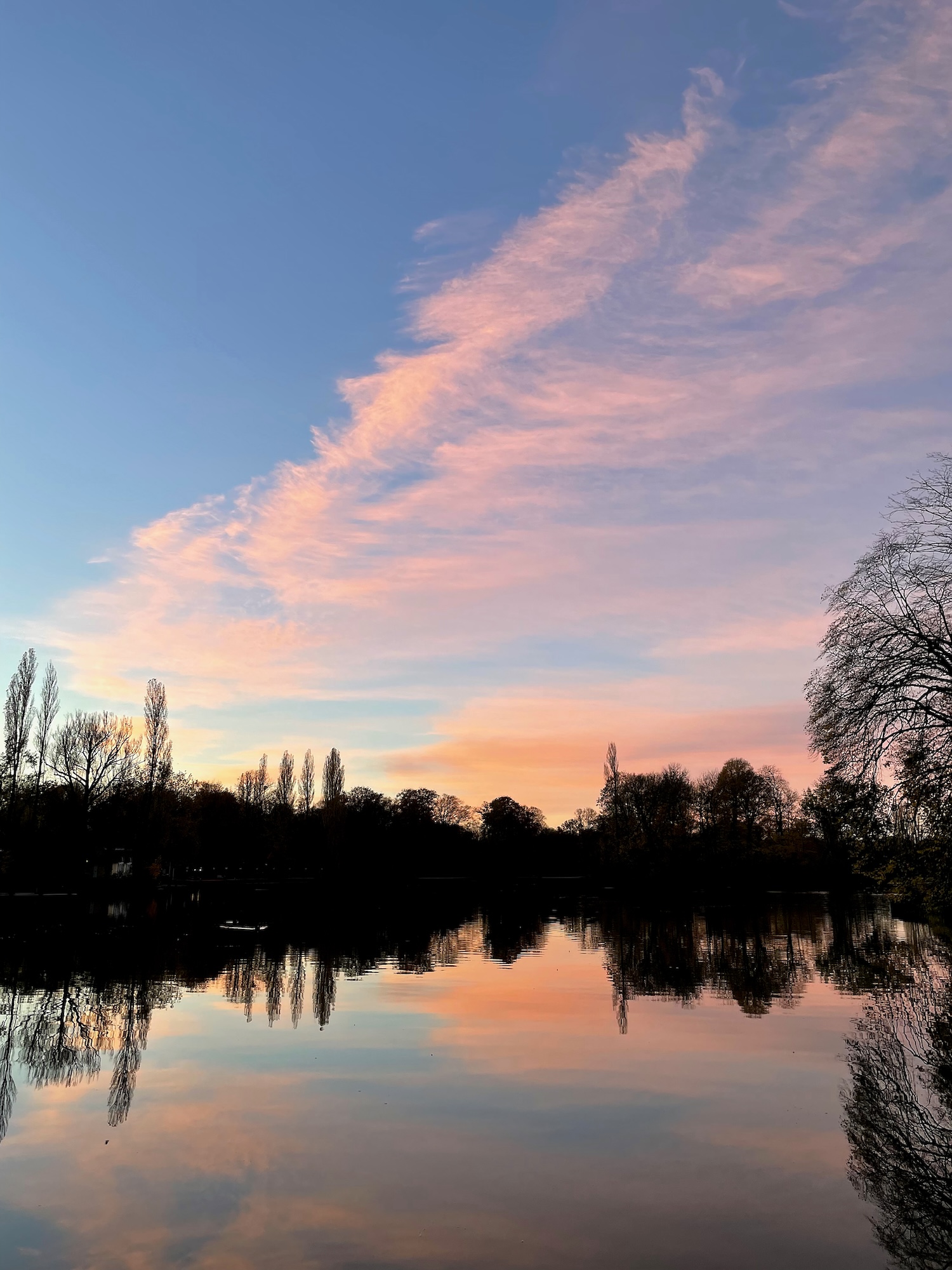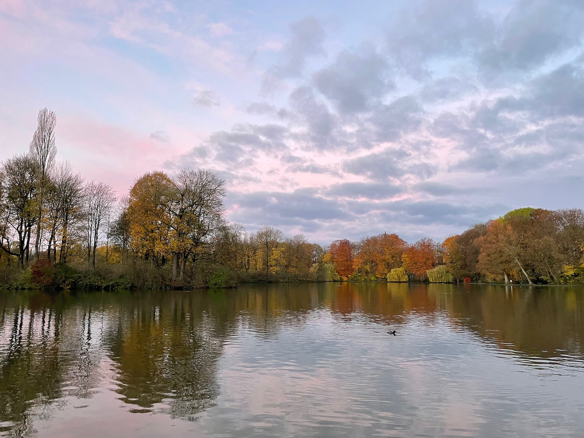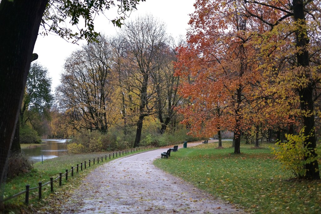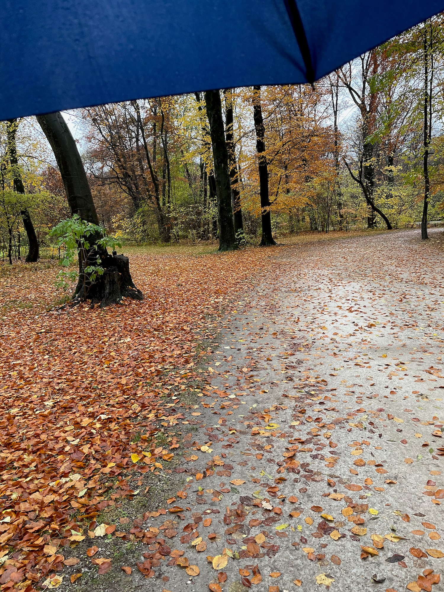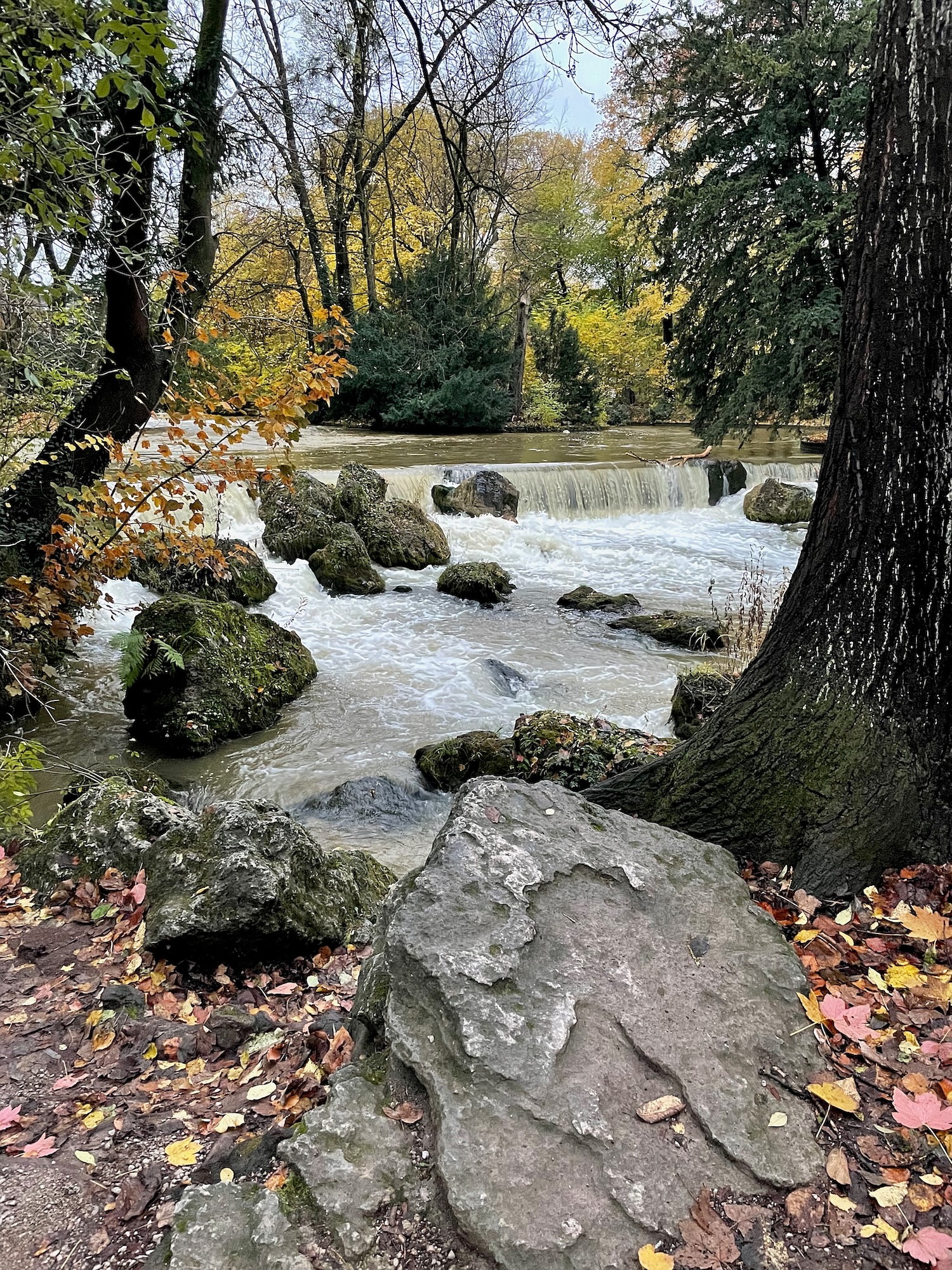 On our first day in Munich, I discovered to my delight that we were only one block away from access to natural beauty, with walking paths and without cars. Our hotel was called Hilton Munich Park, but until I looked at the map and saw huge green spaces everywhere, I didn’t put it together that the hotel was named for its proximity to the Englischer Garten, one of the largest urban parks in the world. Our first morning in Munich, I walked out under the grey sky into the park, and I fell in love. I walked there every day.