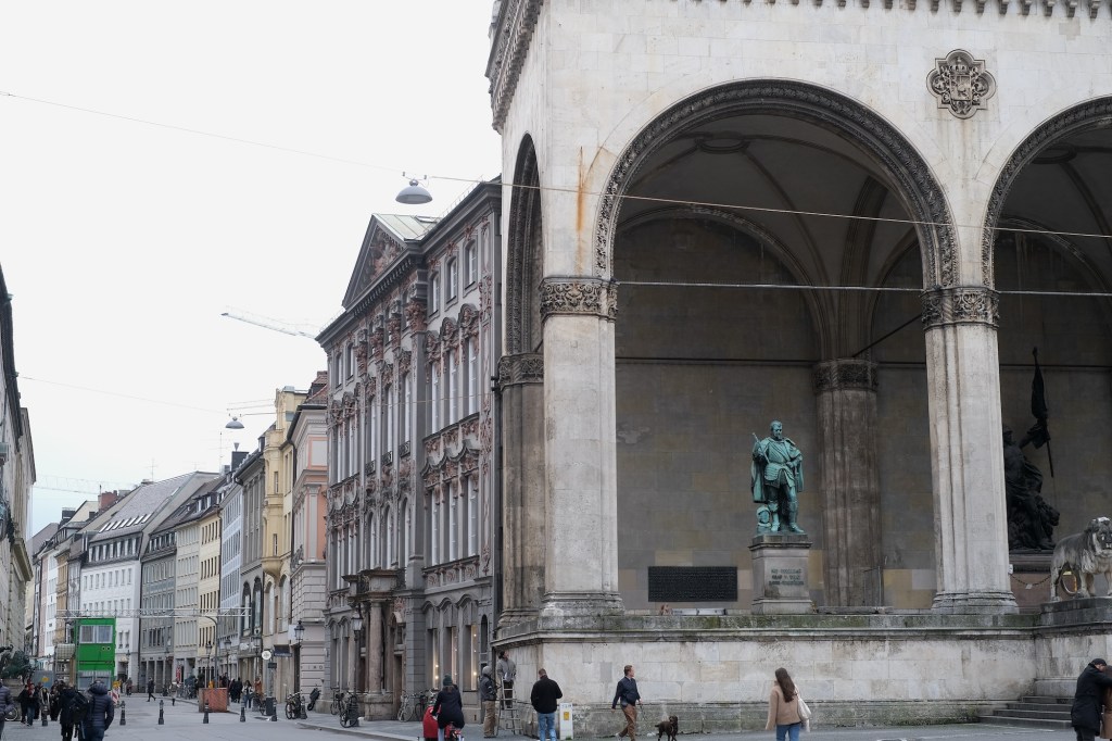So on our way to the beer house, we stopped to watch some surfers, decked out in full wetsuits, surf the river wave. We also walked through the grounds of the Munich Residenz, the palace that was home to Bavarian kings and queens, and Feldherrnhalle, the site of the battle that ended Hitler’s failed coup to take over the Bavarian state in 1923. He was subsequently arrested and found guilty of treason. He wrote Mein Kampf from prison after that arrest.
