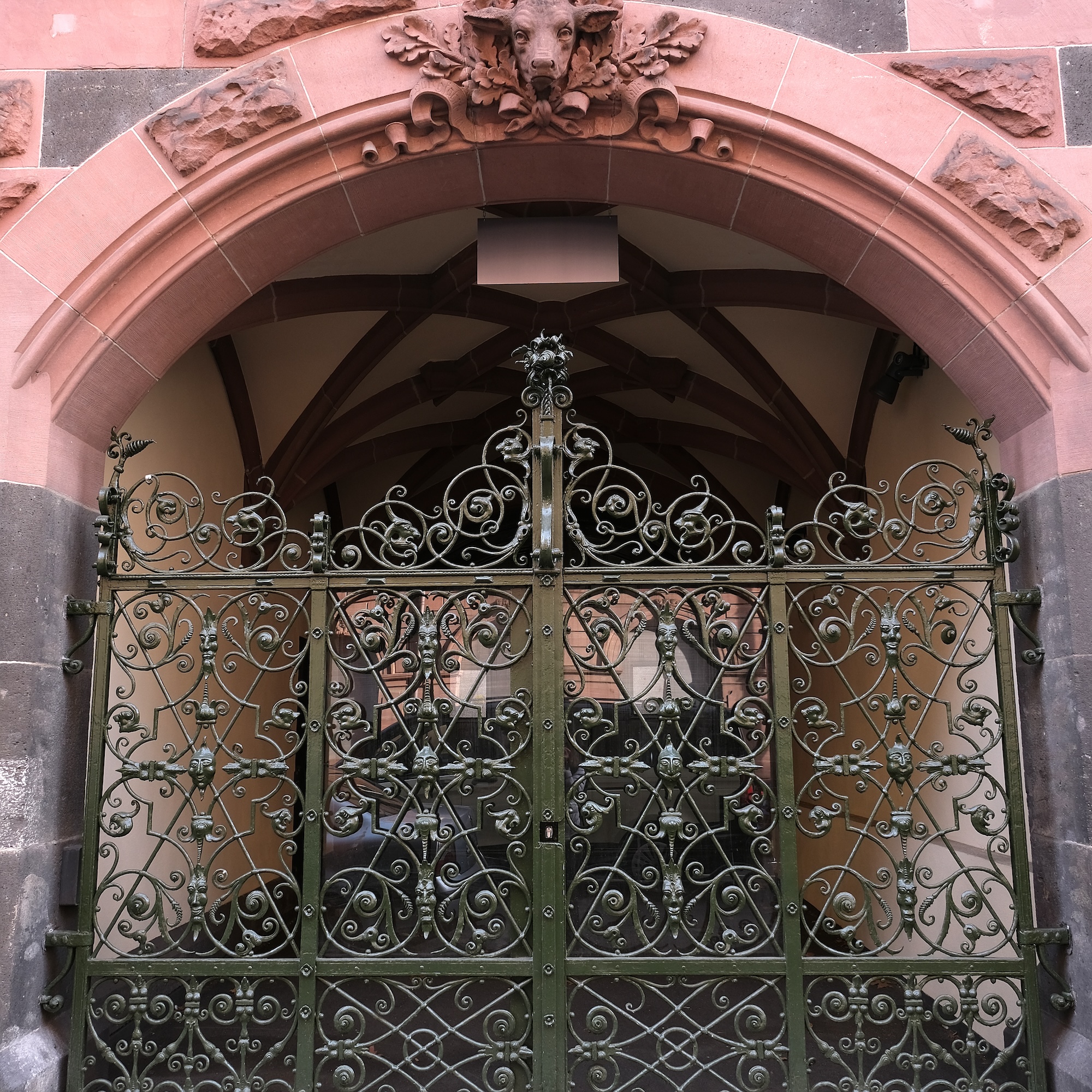 Though we worked in the shiny part of the city where tall metal and glass buildings blocked the sky, our hotel was in a historic part of town only one block from the Main river. These beautiful red buildings were on my way to the river, which I walked along every day.