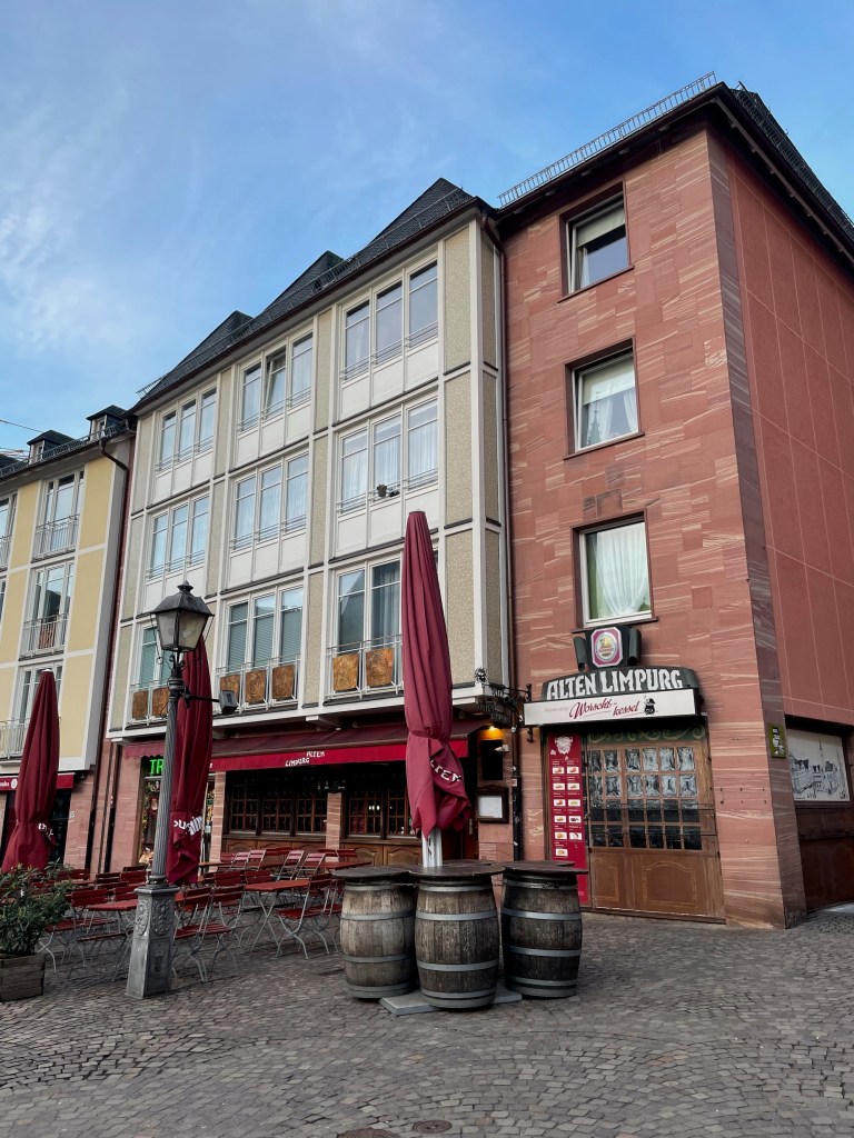 View from the footbridge across the Main RiverRömerbergSpring is coming 🙂 I love these flower boxesMust-dos in Frankfurt: frankfurters, beer, crown cake, Römerberg