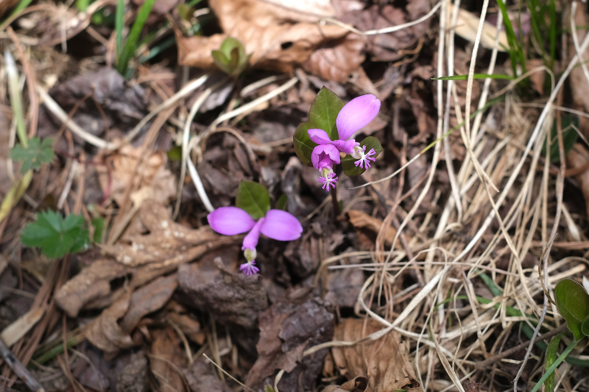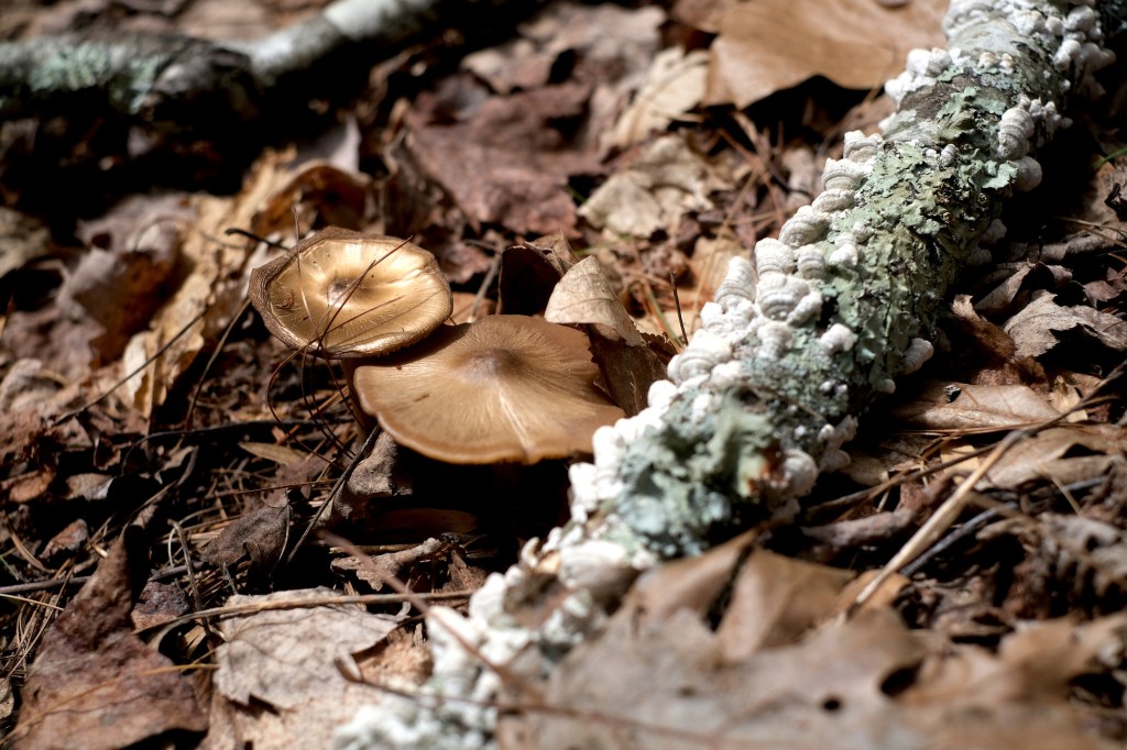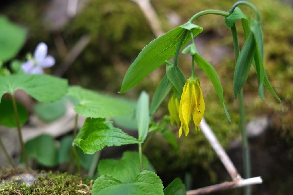 Bronze mushroomsFern fiddleheadI love spring chartreuse I can’t remember what these are calledTriliumFringed Polygala (also known as Gaywings)Spring BeautyWaterfall