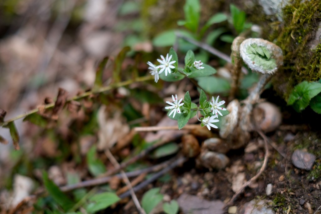 Flowers and fiddlehead. 35 mm – ISO 250 – 1/1700 – f/2.0